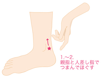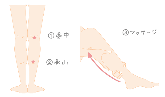 委中からまっすぐ下におりて、足首とヒザ裏の真ん中にあります。